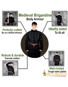 We resolve your doubts about this product: Black brigandine with riveted steel metal plates