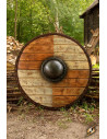 The round shield , made of wood reinforced with a metal umbo, was key in defense and attack. More than just protection, these pieces reflect the skill and prestige of each warrior.