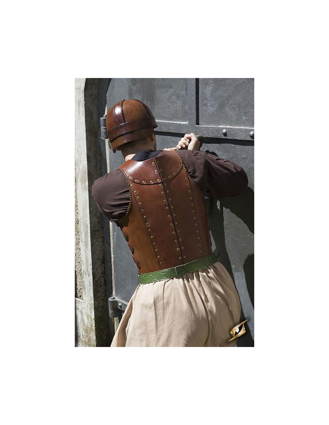 Protect your body from enemy attacks with this impressive medieval soldier armor. Made of top quality leather, this beautiful breastplate is designed to protect your entire torso, giving you maximum security on the battlefield.