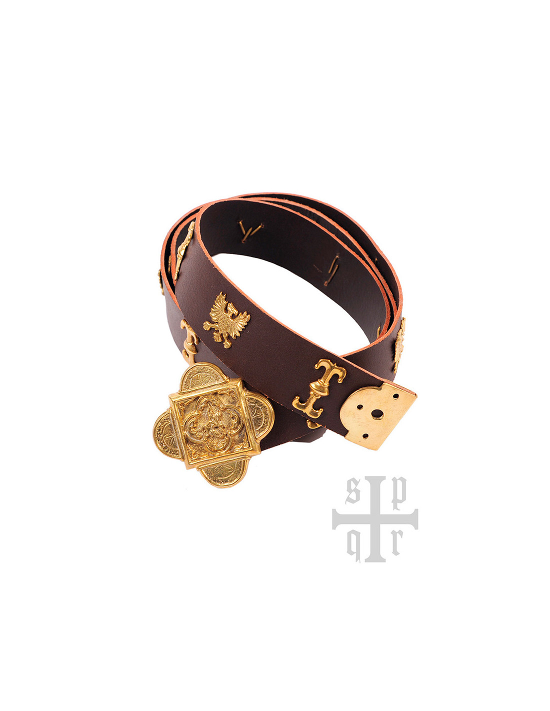 In addition, the belt is adorned with heraldic eagles and fleur de lis, classic symbols of nobility and honor. These details add a touch of elegance and distinction to your outfit, showing your love for history and tradition.