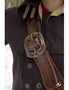 Discover the elegance and style of the pirate brown leather crossbody bag. This self-adjusting Renaissance shoulder bag is made of the best quality leather, which guarantees its durability and resistance. Its versatile and sophisticated design makes it perfect to adapt to any type of rapier or cross sword.
