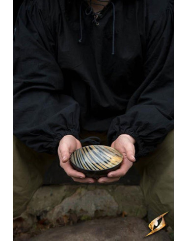 The bag is made from a blend of top grain leather and wool, ensuring its durability and strength. Its reinforced bottom gives it greater stability, preventing it from deforming or deteriorating over time. In addition, its two-tone brown-beige design gives it a vintage and sophisticated look, ideal to complement your medieval outfit.