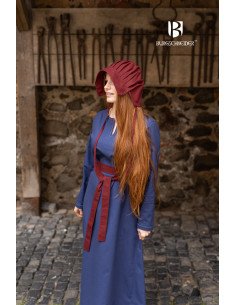 Discover the charm and elegance of the medieval era with our Medieval Dagmar Hat, type Bonnet for women in burgundy. This hat is made of 100% cotton, which guarantees its softness and comfort when wearing it.