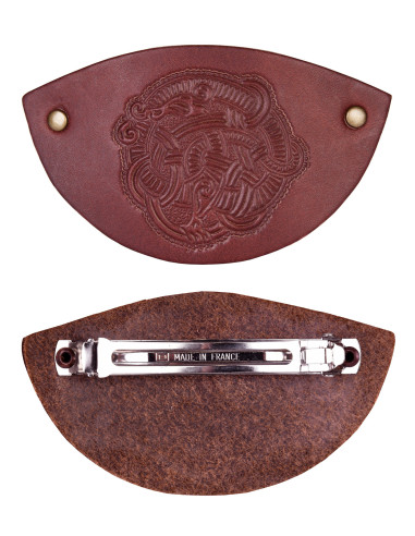 Do you want to add a Viking touch to your hairstyle? Our Celtic Knot Hair Clip is the perfect choice. This beautiful hair barrette, engraved in the style of the Vikings, is made of durable cowhide leather. Thanks to the high-quality, riveted metal clip closure, this pin attaches easily and stays firmly in place.