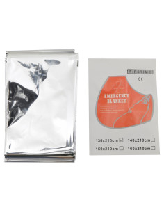 - To keep warm or protect yourself from extreme cold, you will find an emergency blanket made of reflective material; essential for any adventure.