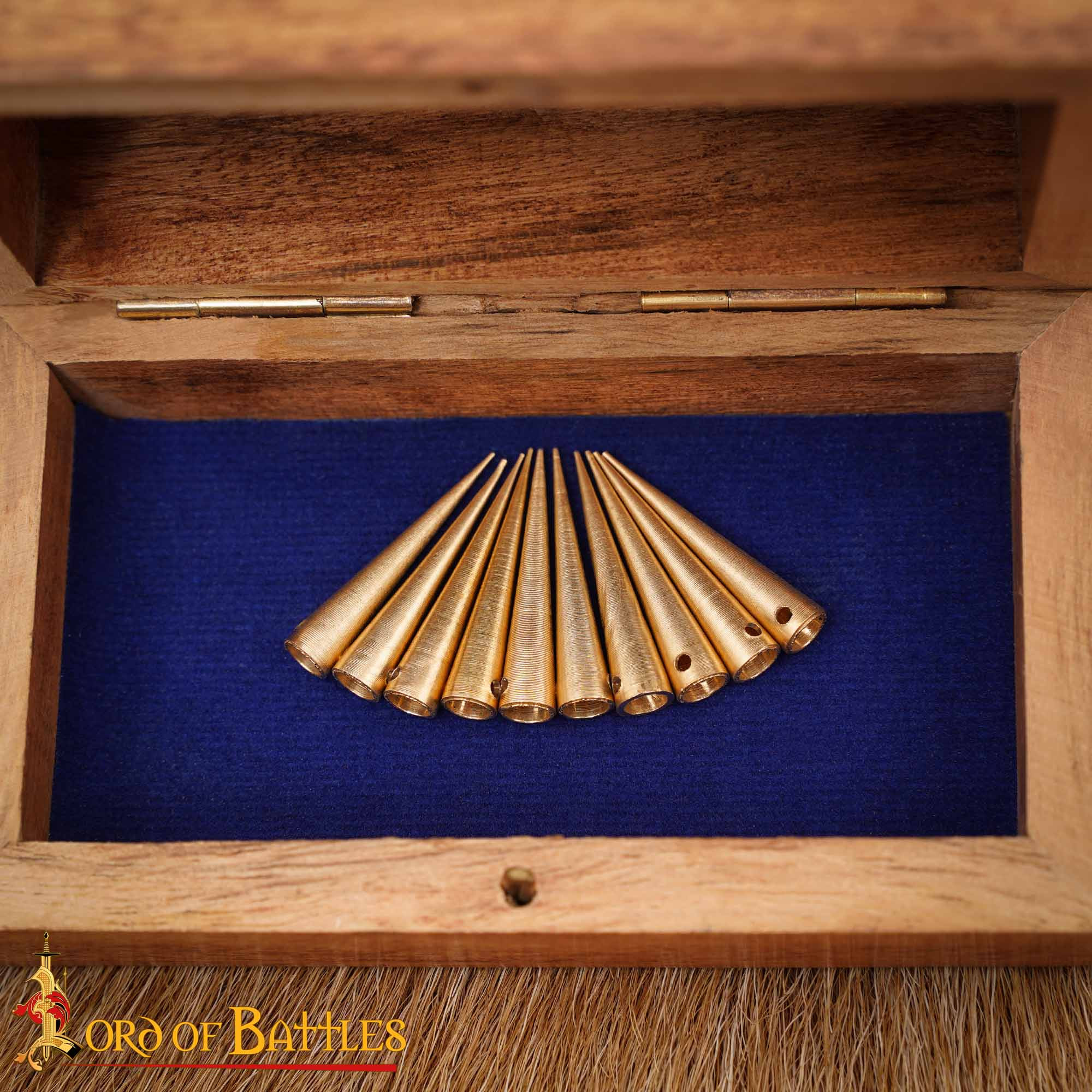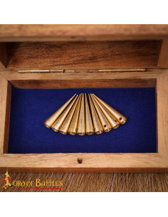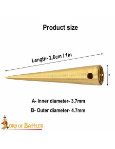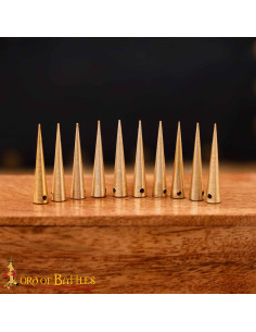 The pack includes a set of 10 aglets, ensuring you have enough to complete your medieval outfit with precision and detail. Whether for historical reenactments, period events or simply adding an authentic touch to your wardrobe, our solid brass aglets are the perfect choice.