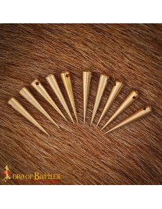 Pack of 10 medieval aglets in solid brass (2.6 cm.)