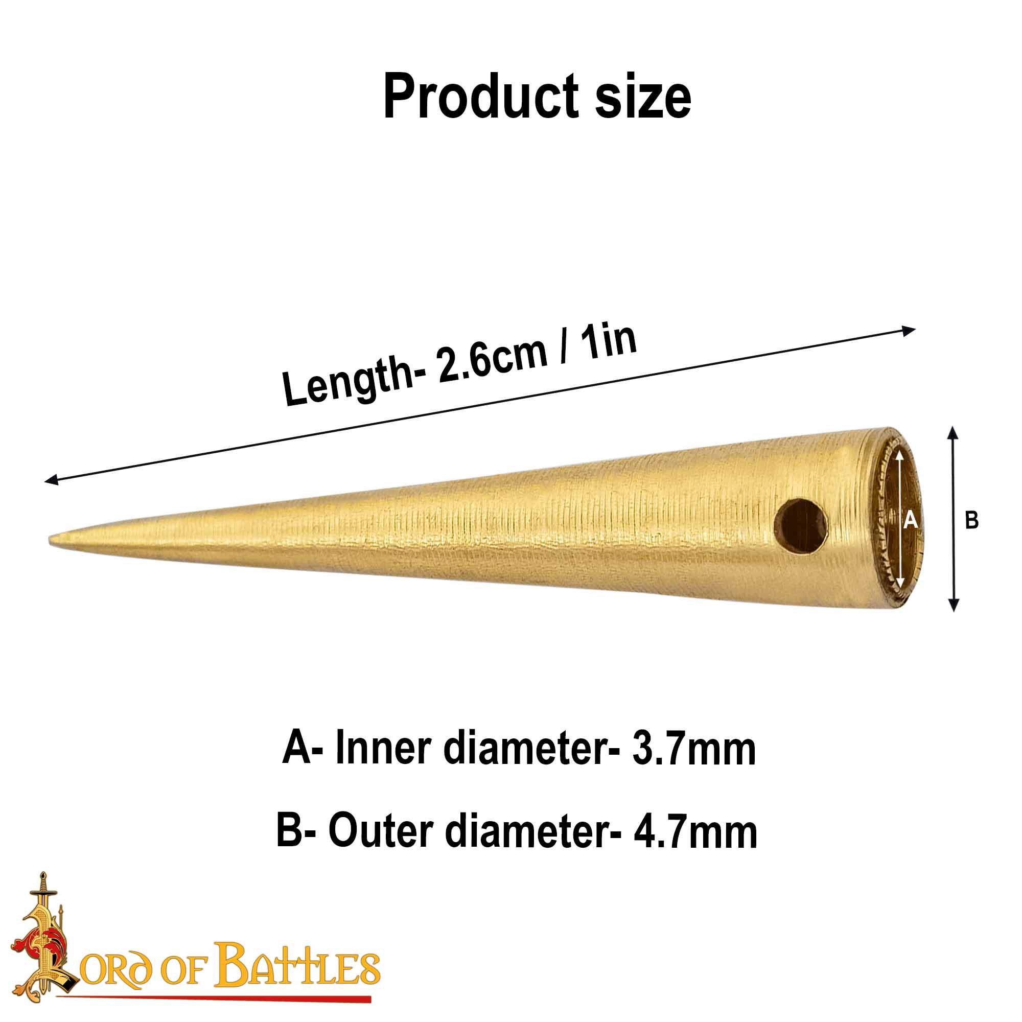 Made from pure solid brass, each aggressor measures 2.6cm long with an inner diameter of approximately 3.7mm and an outer diameter of 4.7mm. They are designed to ensure proper closure on medieval garments, providing functionality and historical style in equal measure.
