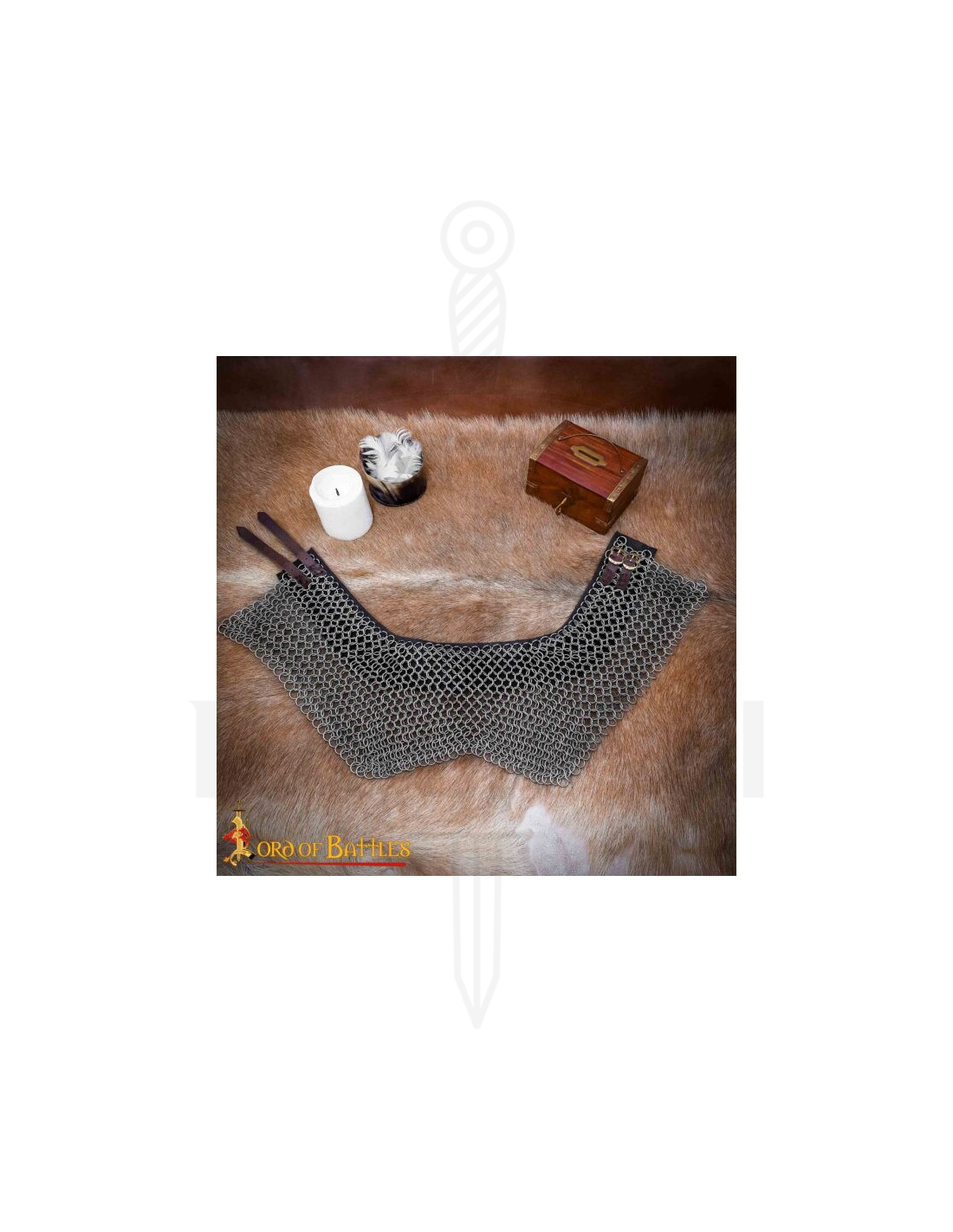 If you are looking to buy a Medieval Steel Mesh Gorget with Leather for historical reenactment, LARP, or historical martial arts training, this piece stands out for offering a balance between visually faithful protection and practical usability. Its natural finish with protective treatment facilitates maintenance and preserves that authentic look that complements any period outfit.