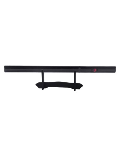 Its black saya with blue patterns complements the set, reinforced by a strap that secures the sheath, while the carved design at the bottom reflects the craftsmanship quality of the product. The blade, although not sharpened or pointed, has been designed solely for decorative purposes, intended to be the centerpiece in your favorite space.