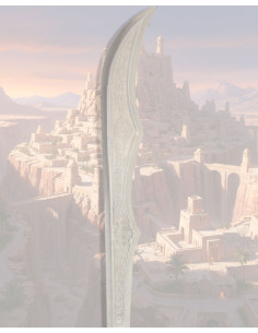 This ornamental reproduction captures the reliefs and curved strokes that define the original design, providing a crafted and authentic appearance without sacrificing ease of use. The blade offers an imposing profile that, along with its angular sections and symmetrical engravings, creates a visual effect that attracts attention and sparks conversation in any display case or event.