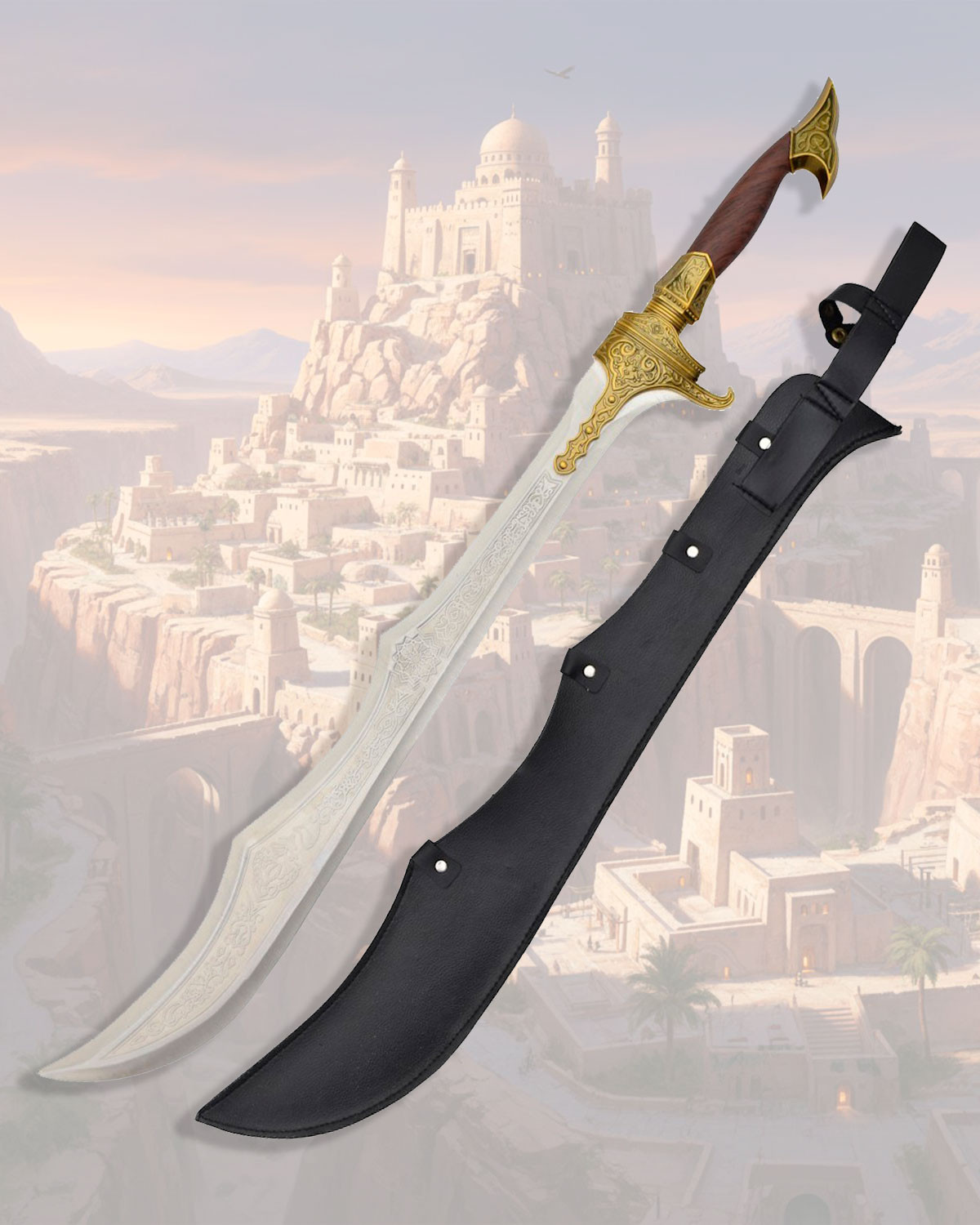 Inspired by Basim, a prominent character from the Assassin's Creed saga, this sword references the game's universe and aesthetic, connecting with fans who value replicas with faithful visual identity and collectible character. This connection makes the piece a narrative object, perfect for display or completing a recreation.