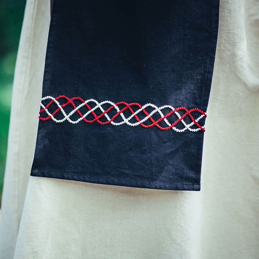 Discover the Bua black Viking apron! This apron is perfect for those looking for a unique and original style in the kitchen. With its red and white embroidery, this apron will transport you to the Viking Age.