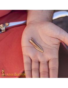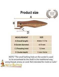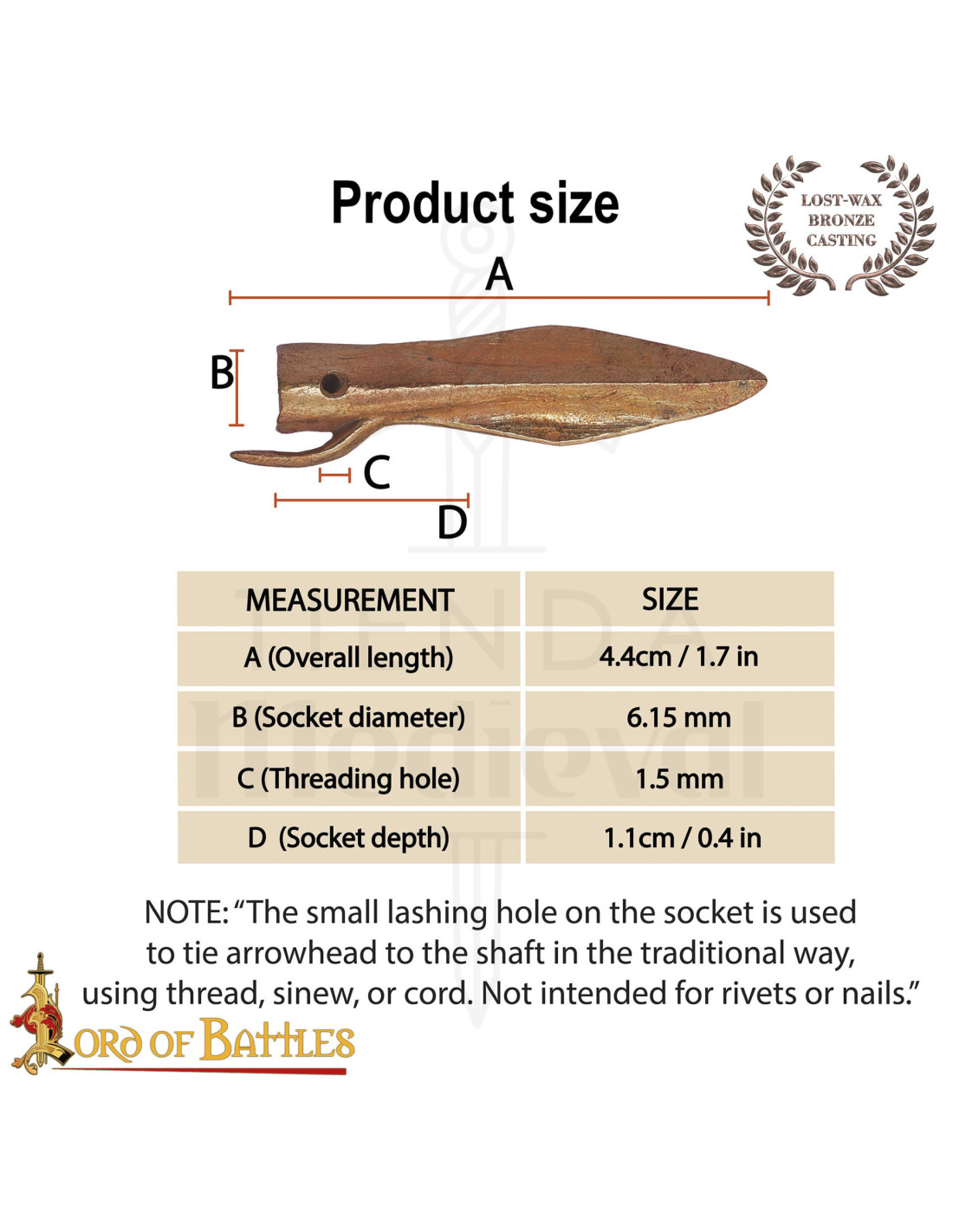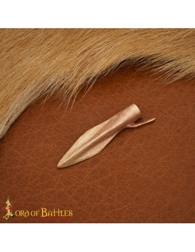 The bronze reproduction of this period, crafted using the ancient lost wax technique, offers a finish that conveys authenticity and character, without sacrificing functionality. Its blade shape with a central keel and the base with a socket and rear spur ensure a secure fit onto a shaft, providing stability and efficiency in any reconstruction or projectile project assembly, just as it was used in ancient times.