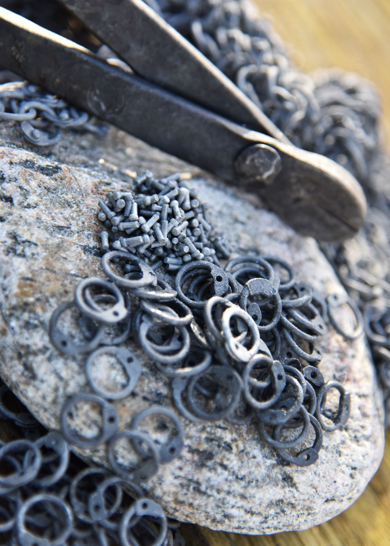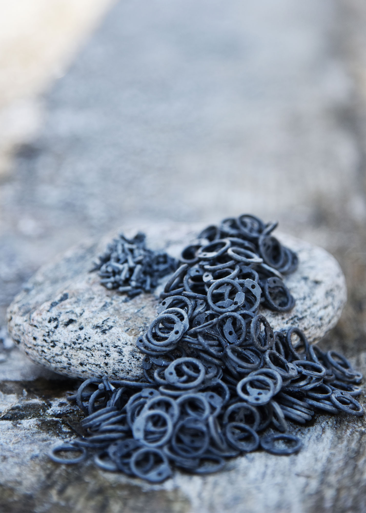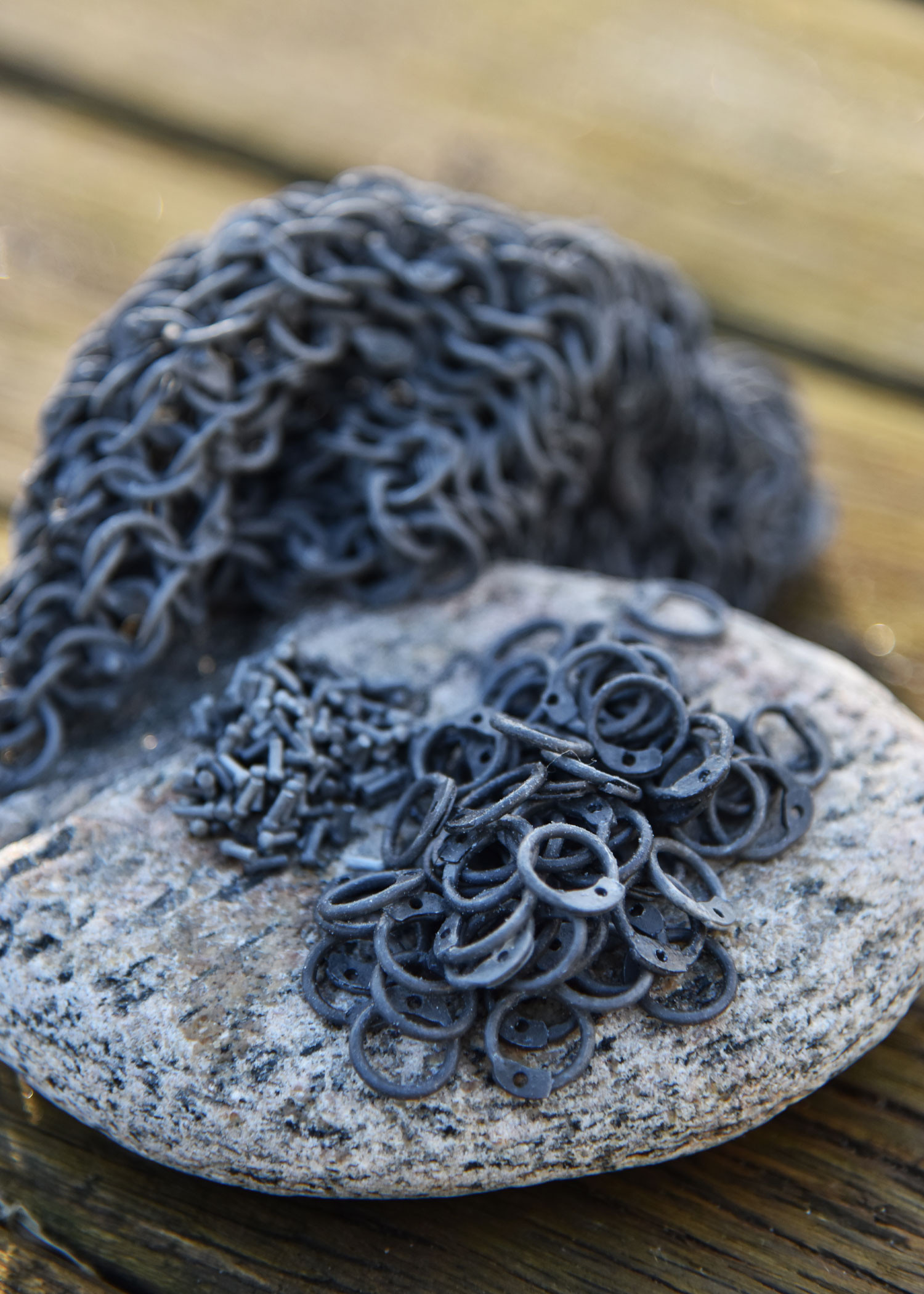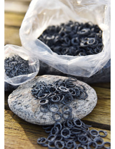 Thanks to its matte dark gray finish, each ring not only provides a modern and sleek aesthetic but also ensures a smooth and uniform texture, making handling and assembly easier. It includes approximately 5000 riveted rings, designed in a type of assembly called ARR (Aluminium Round Riveted), ideal for repairing or extending chain meshes, guillotines, or mesh shirts. The variety of small elongated pieces and the presence of small holes in some rings enable simple and reliable assembly, offering the customization flexibility you seek.