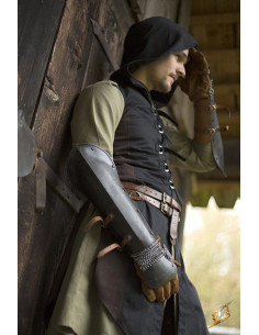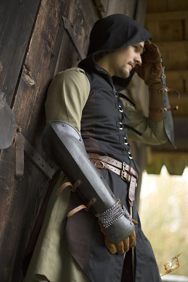 To ensure unrestrained yet protected movement, these bracers are connected by strong chain mail. This chain mail not only ensures that your forearms are protected, but also allows you to move with ease and agility.