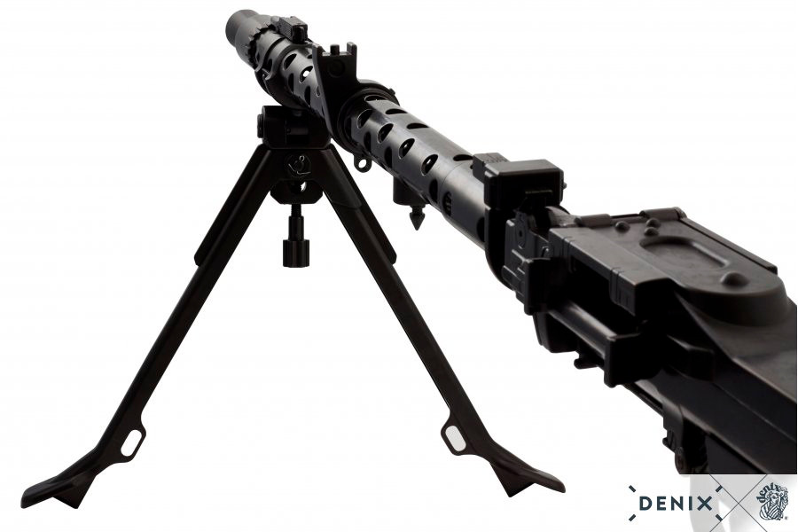 The World War II Germany MG34 machine gun is a high-quality replica manufactured by the Spanish company Denix. This impressive collectible is made of metal, wood and plastic, and features a loading and firing simulator mechanism as well as a movable bipod.