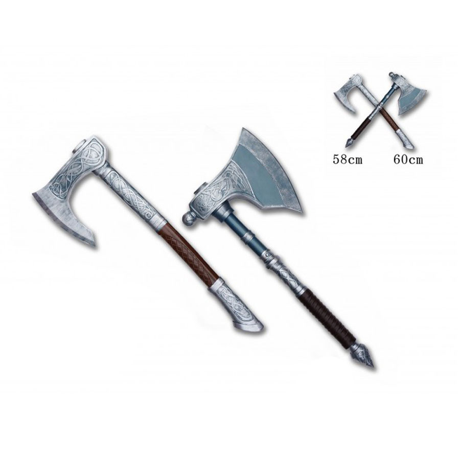Discover the power of the Vikings with the Valhalla Viking Ax Set of 2! These impressive axes are made of high quality resin, which makes them durable and resistant. With measurements of 56 x 24 cm and 60 x 26 cm, these axes are the perfect complement for any medieval lover.