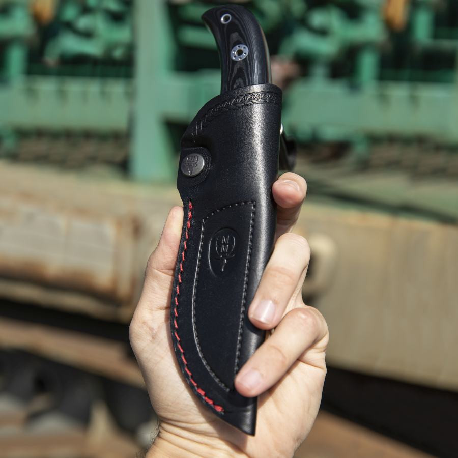 Its drop point design allows you to tackle a wide variety of uses, from outdoor activities to precision work. The sharp edge guarantees effective cuts, while its black micarta handle provides an ergonomic and comfortable grip, perfectly adapting to the shape of your hand.