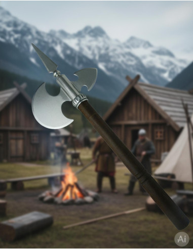 Weighing in at 750 grams, this ax is perfect for displaying in your home as well as for use at historical re-enactments or themed events. Its width of 22 cms. and its length of 61 cms. make it an imposing and striking piece.