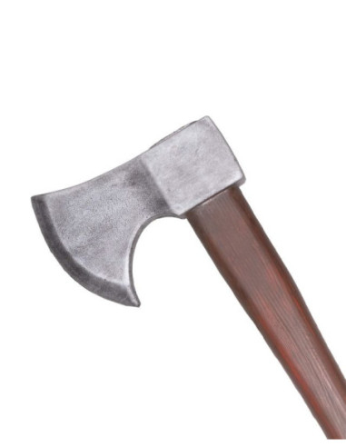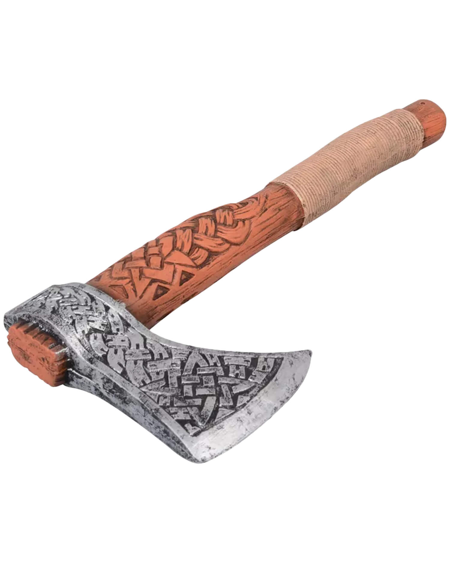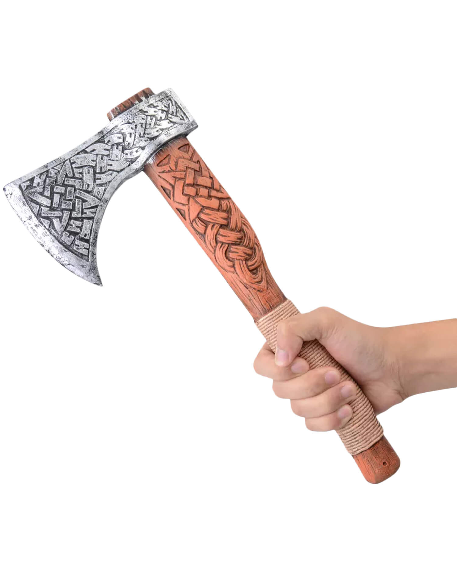 The shaft, decorated with a realism that mimics the texture of wood, is wrapped in a leather-like coating that ensures a firm and comfortable grip, even in the most intense battles. Thanks to its balanced and lightweight design, you can maneuver the axe with ease, whether as a secondary weapon or as a decorative accessory that complements your outfit.