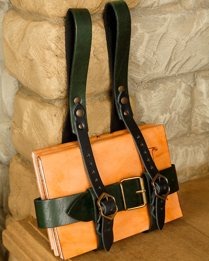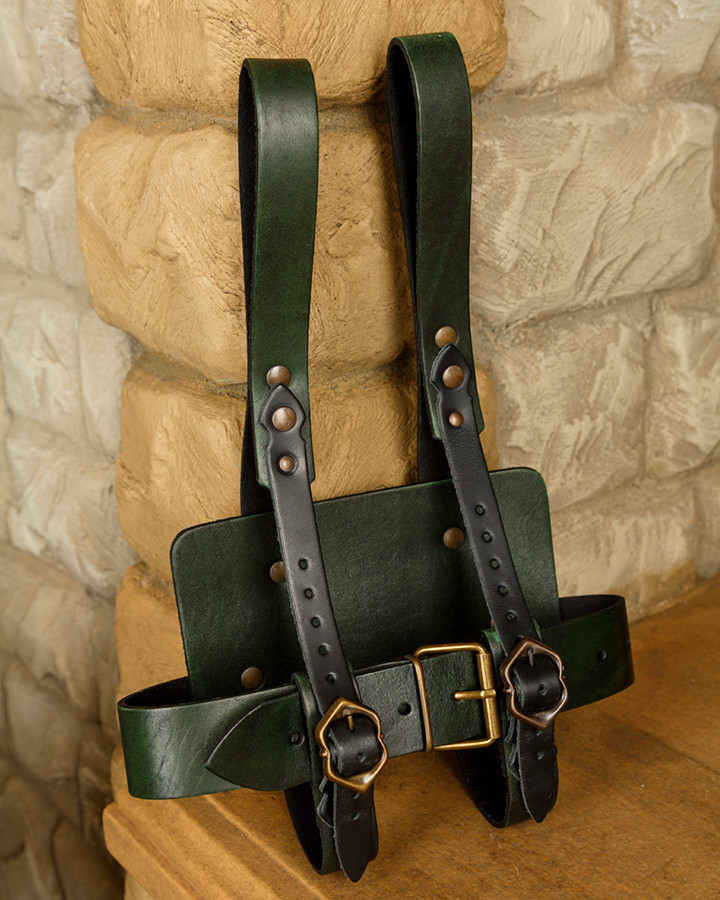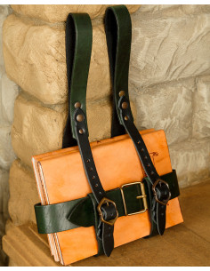 Do you like medieval times? Do you want to carry your books with you in an authentic and elegant way? Then the Baldric Tiberius is just what you need. This baldric, made of high-quality green leather, is based on those used in medieval times, adding a touch of style and originality to your outfit.