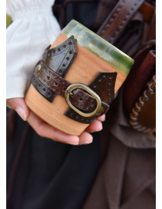The baldric closes down the middle with a brass colored buckle, which not only ensures a secure closure, but also adds a visually appealing detail. This buckle gives the baldric a touch of rusticity that combines perfectly with its traditional design.