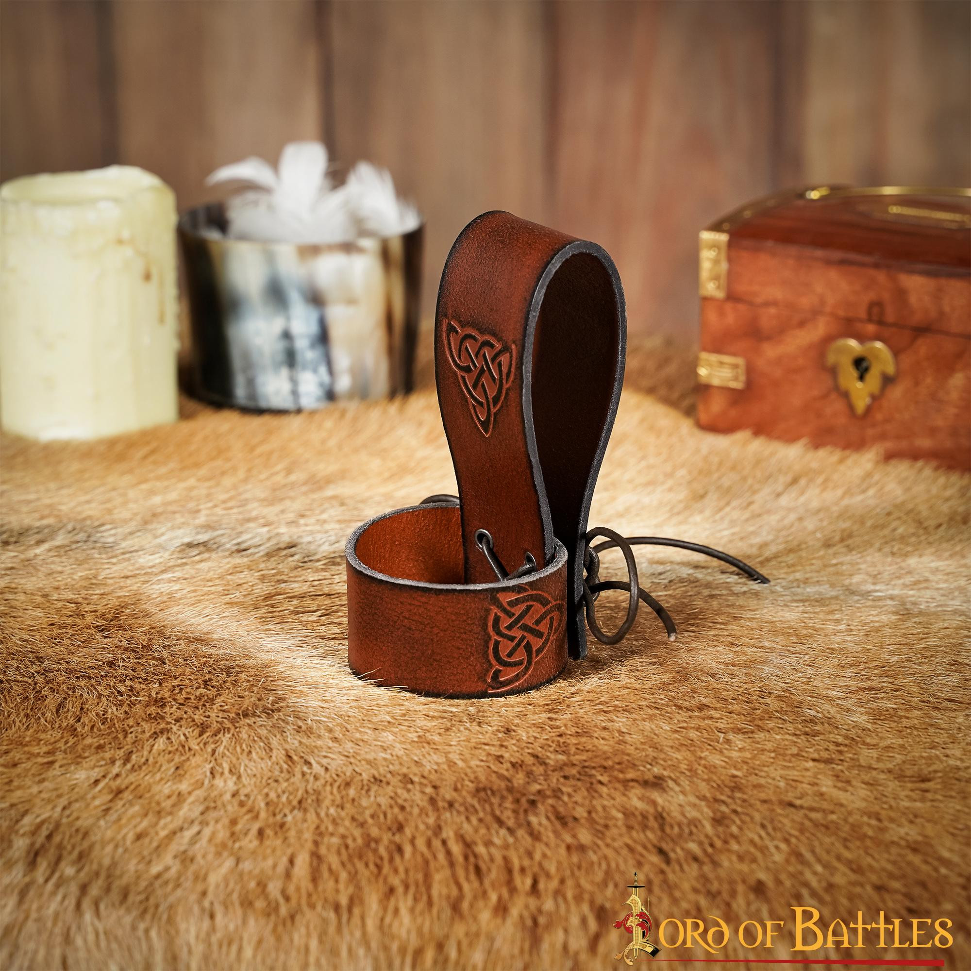 Do you want to add a touch of medieval flair to your next LARP adventure or costume? This beautiful baldric for horns, daggers or swords with intricate raised Celtic knotwork is the perfect accessory.