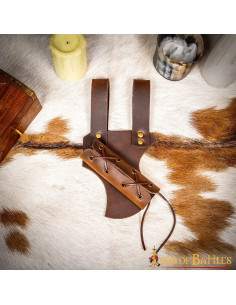 One of the main characteristics of this baldric is its versatility. Thanks to its adjustable strings, you can adapt it to different widths of weapons, which makes it the ideal support for both swords and axes.