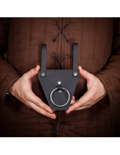 The black ring baldric for axes or daggers is the perfect complement for any weapon lover. Handmade from high-quality genuine suede leather, this product guarantees durability and resistance.