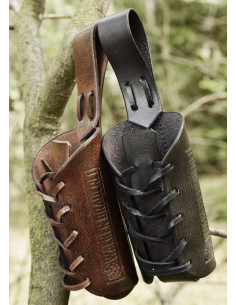 This high-quality bottle holder, made from 2.5mm thick vegetable-tanned leather, is the perfect solution. It easily attaches to your belt with a loop, allowing you to keep your hands free and your drink ready to enjoy.