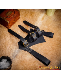 Enter the medieval world with our Adjustable Sword Baldric in black leather, a masterpiece that will transport you to times of bravery and honor! Feel the power in your hands as you draw your sword with the speed of a true knight.