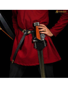 With a versatile design that suits a wide range of historical or fantasy characters, this baldric is the perfect accessory to complete your outfit. Whether you are a brave Viking warrior, an elegant lady, or a skilled Elven ranger, Mythrojan's sturdy leather and authentic appearance will make you stand out at any event. This baldric is ideal for holding Viking and Norman broadswords, medieval combat swords, longswords, and rapiers, perfectly adapting to your needs.