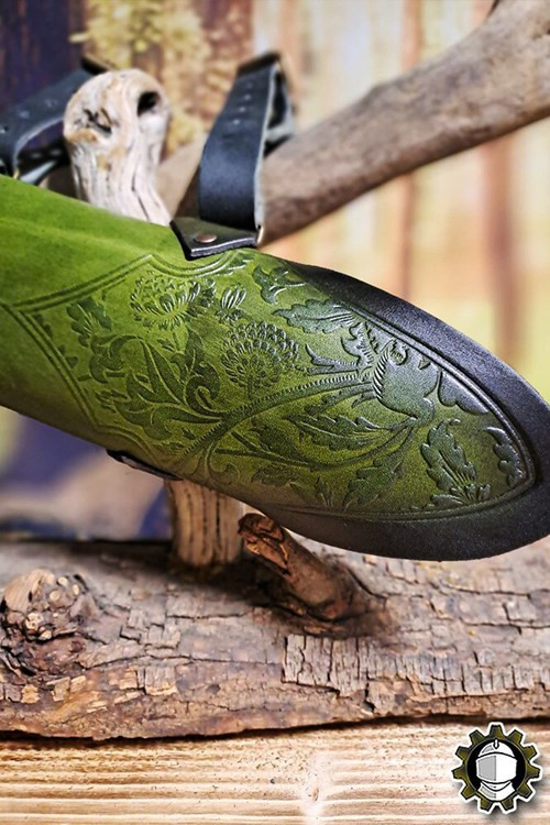 The elegance of its design in a captivating green tone adds a touch of sophistication to any outfit. Its structure is designed to offer you exceptional comfort, ideal for those long days at medieval fairs or reenactment events. Forget about accessories that are only for show; this belt is your perfect companion in all adventures, keeping your sword securely at hand.