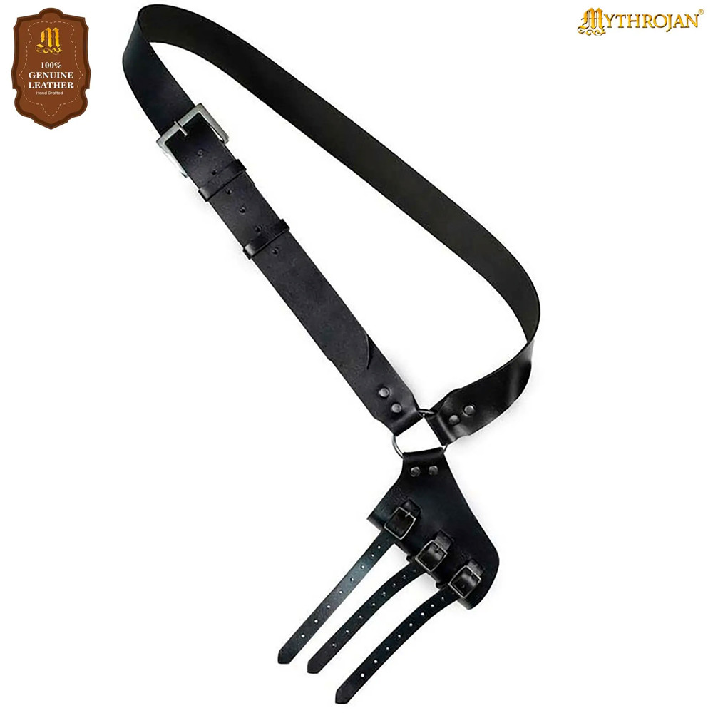 Adjustable leather baldric for swords and axes, brown
