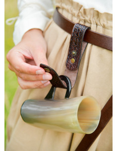 Are you looking for a touch of medieval style for your outdoor days or themed events? This elegant brown leather jug holder is the perfect choice to combine functionality with an authentic and carefully crafted design.