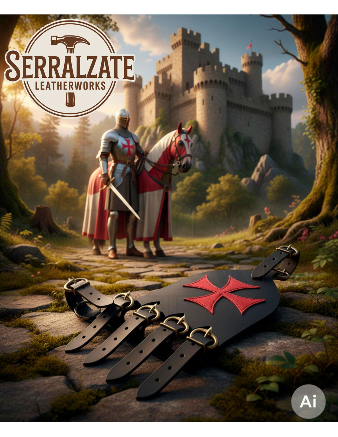 Made in Spain with the highest quality leather, this handcrafted belt loop combines durability and elegance. The red Templar cross, carefully crafted, enhances its historical appearance and makes it a unique piece. Its simple and functional design ensures you can carry your sword with confidence and without hassle, whether at themed events, reenactments, or collections.