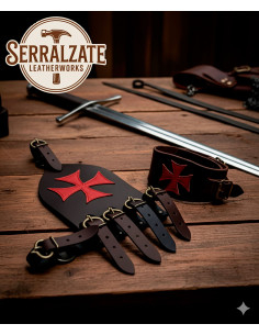 Made in Spain with the highest quality leather, this handcrafted belt loop combines durability and elegance. The carefully crafted red Templar cross enhances its historic look and makes it a unique piece. Its simple and functional design ensures you can carry your sword with confidence and without hassle, whether at themed events, reenactments, or collections.