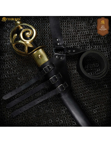 Its design allows you to hang your sword securely and comfortably, enabling you to proudly showcase an accessory that evokes times of knights and legendary battles. Ideal for historical reenactments, cosplay, or collection, this brown leather baldric combines functionality and style with an authentic character that will make a difference.