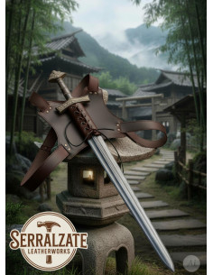 Handmade in Spain by renowned leather artisans, each piece offers a sense of premium quality and durability designed to accompany you for a long time, as well as age with character. The brown finish provides discretion and versatility, perfect for cosplayers, light training, or collectors seeking a piece with presence.