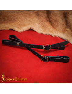 This pair of straps makes transporting and displaying your weapon simple and elegant. Handmade from genuine leather, they offer a firm yet flexible feel that allows for quick placement and removal of the sword, and they adapt to different types of belts thanks to their customizable fit.