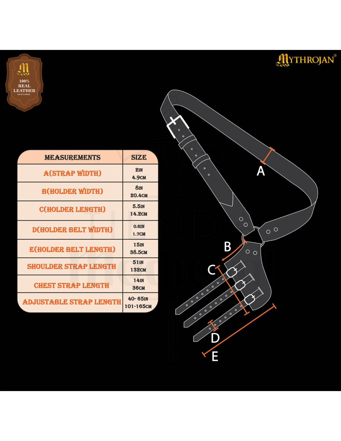 The crossed design distributes the weight of the sword across the shoulder and chest, avoiding discomfort and ensuring your sword is always within reach when you need it. The adjustable strap and the piece with a ring and three small straps allow for adjustments to fit different body types and fighting styles, ensuring stability with every movement.