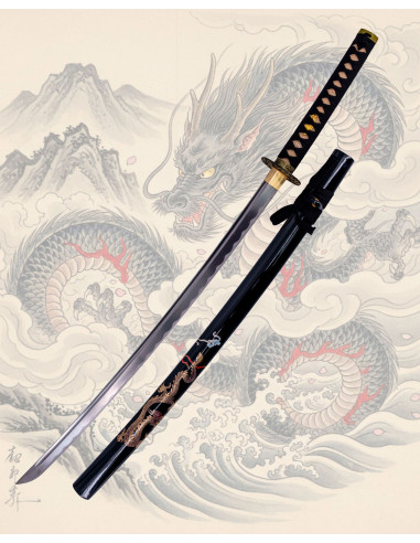 If you want to buy a Functional Katana with a 1045 carbon steel blade, lacquered black wooden scabbard with a golden dragon, you will find in this piece a balance between aesthetic presence and practical performance, ideal for collections, themed decoration, or for those practicing techniques with a quality replica.
