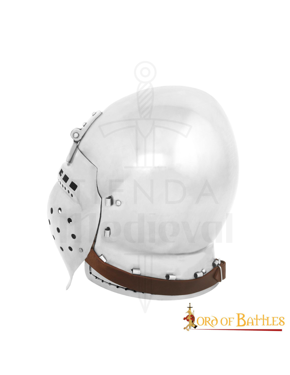 Are you looking for the ultimate helmet for your next tournament or battle? Directly inspired by the 14th century originals, this Klappvisor Bascinet will be an excellent choice for a knight like you!
