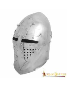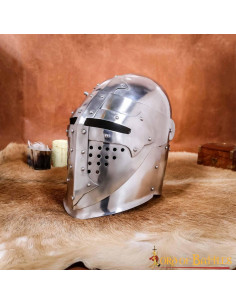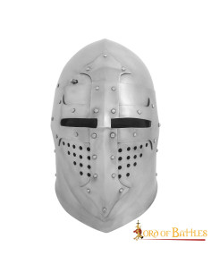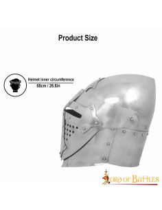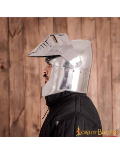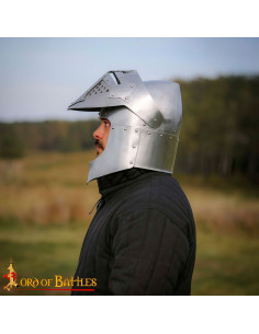 With our 14th Century Knight Basinet with Visor, you will live up to the deeds of the knights of yesteryear. This helmet is an authentic reproduction that will immerse you in medieval times, taking your reenactment experience to the next level. Get ready to embody the bravery and nobility of true medieval warriors!