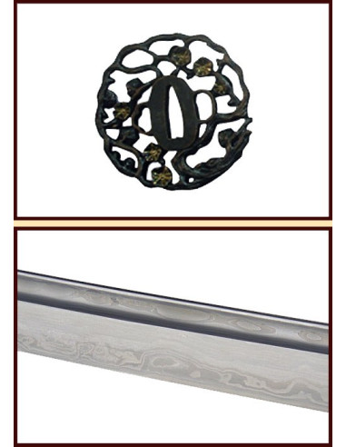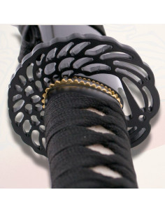 The black lacquered scabbard catches the eye with its delicate decoration of white swans, a symbol of grace and purity. Complementing this elegant design, the black wrapping of the handle and its stingray-skin imitation coating guarantee a firm and comfortable grip. The tsuba, carefully decorated with a swan design, adds a distinctive touch, turning this piece into a masterpiece.
