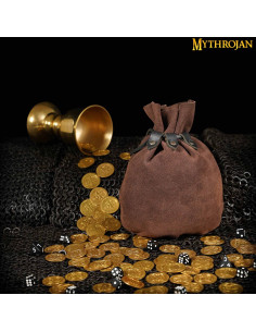 The medieval beggar bag in dark brown leather is the perfect complement to your historical outfit. Handcrafted by Mythrojan, a renowned American manufacturer of historical and fantasy clothing and accessories, this bag offers authenticity and quality.