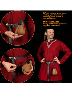 With two sizes to choose from, this bag is the ideal companion for your adventures. Sturdy, reliable and easy to close, it will keep your coins, dice, keys and all your prized possessions safe during your epic exploits. Its authentic look and adaptable design make it essential for both medieval events and your daily life.