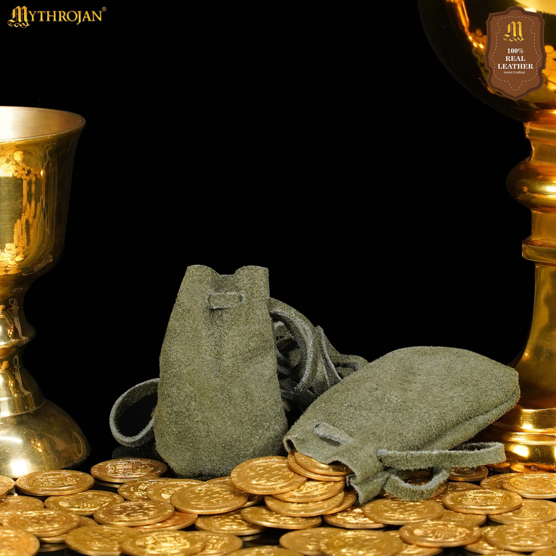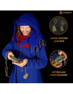 Bring an authentic touch to your medieval world with these elegant suede pouches in vibrant green. Perfect for storing coins, dice, herbs, or small belongings, their soft finish and classic design make them ideal to complete any outfit for LARP, SCA, Renaissance fairs, or Viking-themed events.