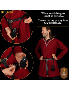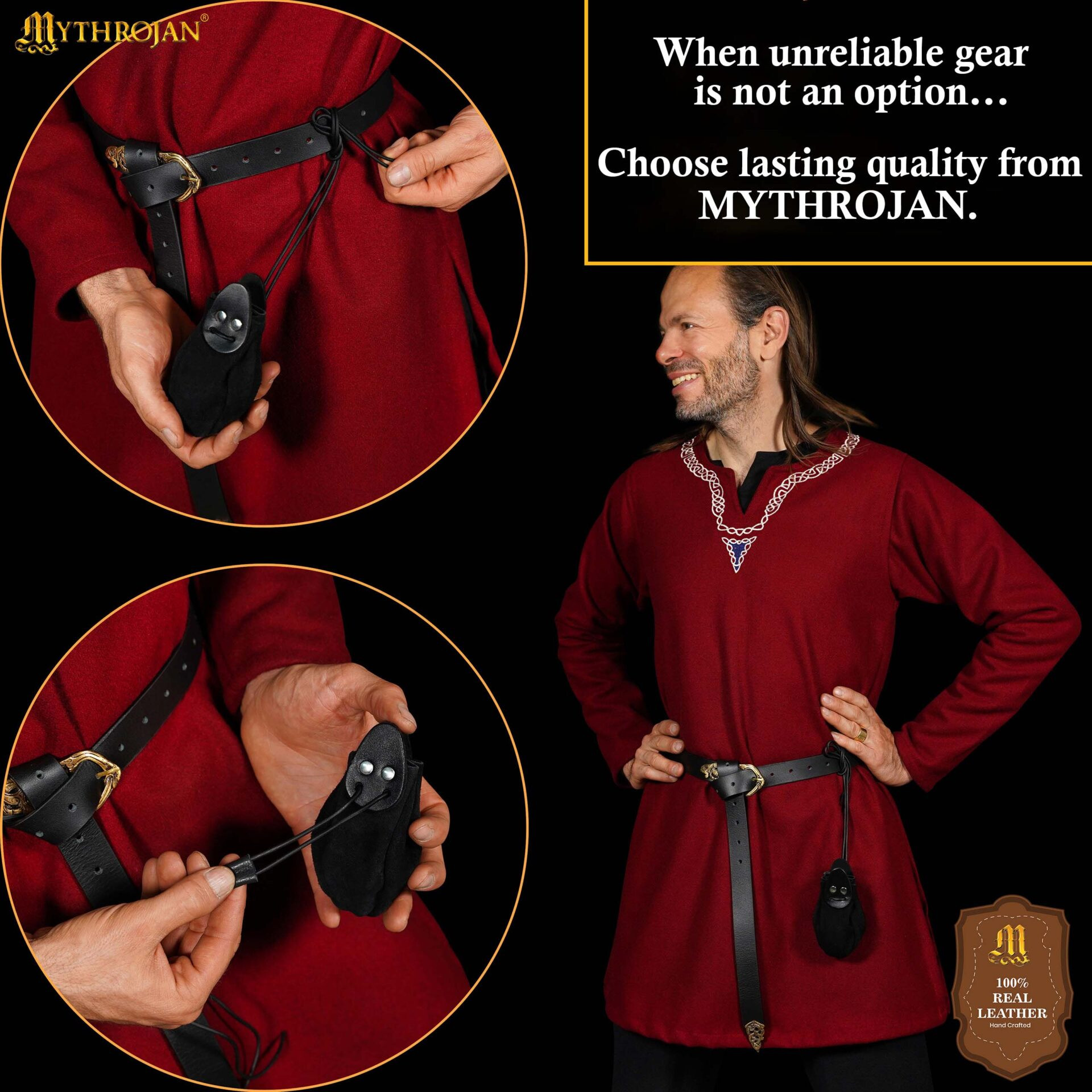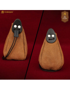 Black medieval beggar bag with laces (20.3x16.5 cm.)